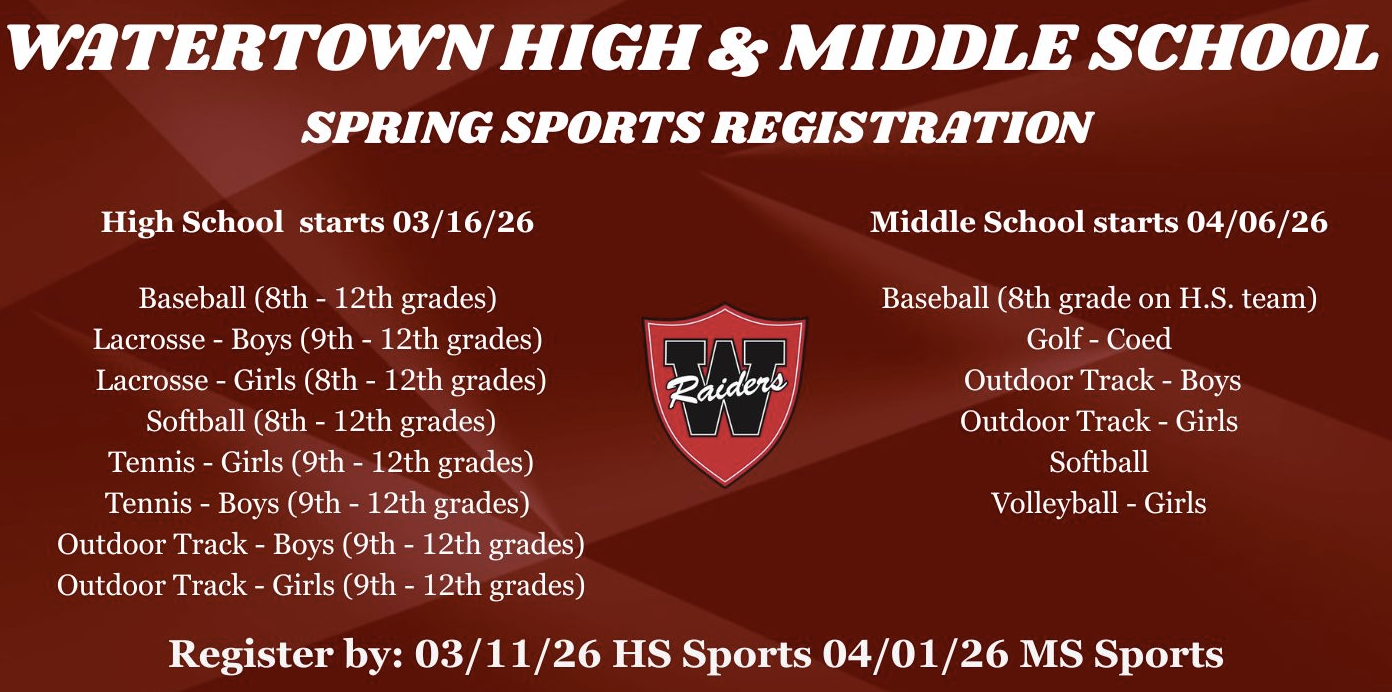 More than 30 different clubs exist at Watertown High School on a yearly basis, driven by student requests and interests. WHS also offers a significant competitive athletics program, with 26 athletics teams across the fall, winter, and spring seasons. WHS teams regularly qualify for state tournaments and compete for state championships, with field hockey winning 21 state championships in the last four decades alone.